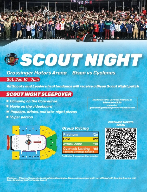 See the flyer here to purchase tickets: Prairielands Scout Night at the Bison